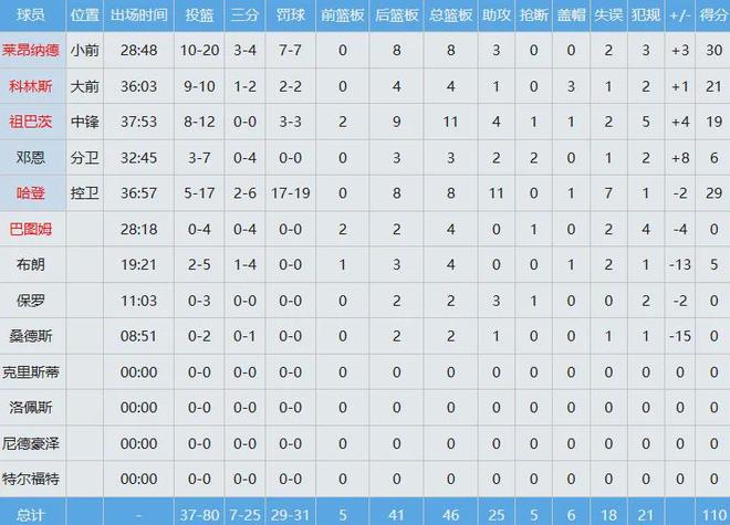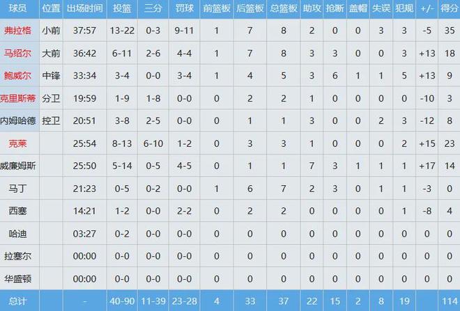 快船数据如下: