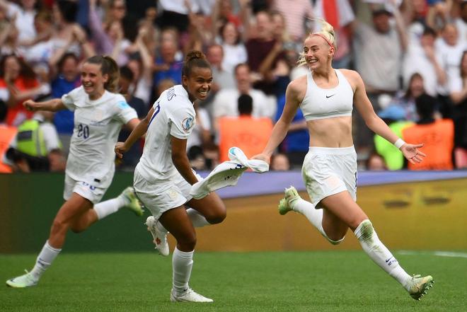 2022年7月30日,女足欧洲杯决赛,英格兰女足迎战老牌霸主德国女足。双方鏖战至加时赛,第110分钟,凯莉门前两连击绝杀。在确认进球有效后,凯莉激情脱衣奔跑庆祝。