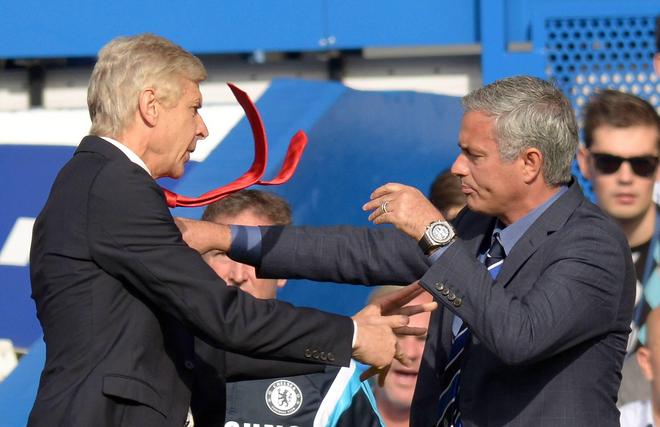 2014年10月5日,英超第7轮,切尔西主场2-0击败阿森纳。上半场,在卡希尔铲倒桑切斯后,暴怒的温格与穆里尼奥在场边发生了冲突。在当时,教授与狂人之间的关系可谓是势同水火。